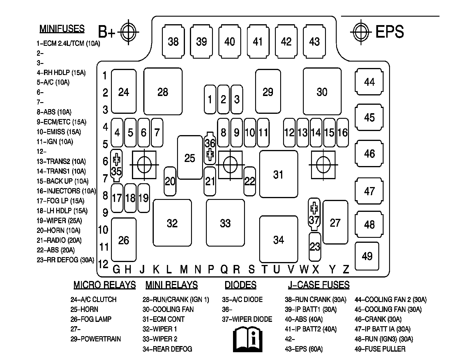 Fuse Block - Underhood Label (2.2L, 2.4L)