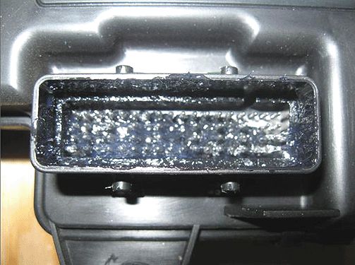 Fretting corrosion looks like little dark smudges on electrical terminals and appear where the actual electrical contact is being made. In less severe cases it may be unable to be seen or identified without the use of a magnifying glass.