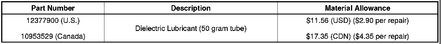 For vehicles repaired under warranty, use the appropriate/closest labor operation depending upon the module/component connection that the dielectric lubricant was applied to refer to the table above.