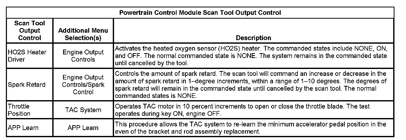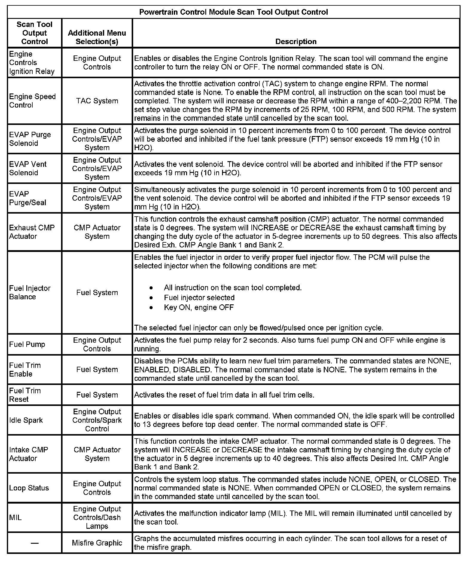 Scan Tool Output Controls