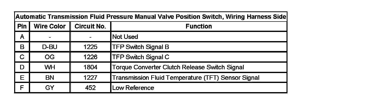 Automatic Transmission Fluid Pressure Manual Valve Position Switch, Wiring Harness Side