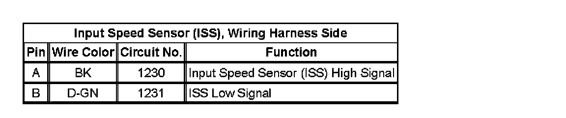 Input Speed Sensor (ISS), Wiring Harness Side: