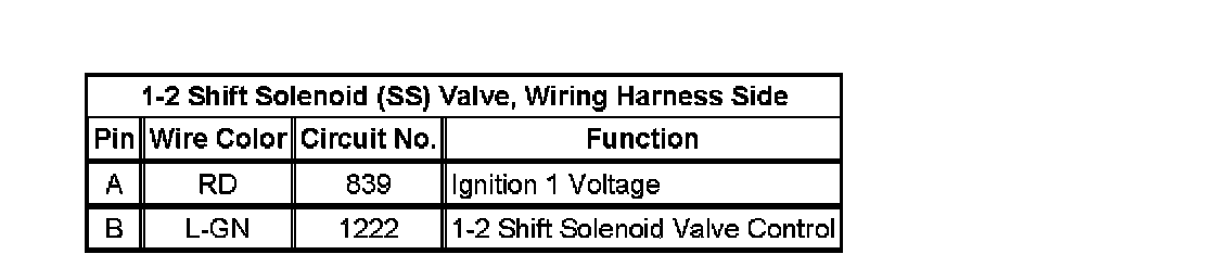 1-2 Shift Solenoid (SS) Valve, Wiring Harness Side: