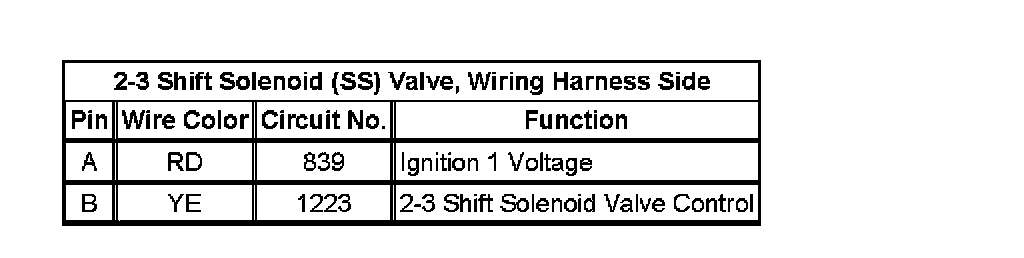 2-3 Shift Solenoid (SS) Valve, Wiring Harness Side: