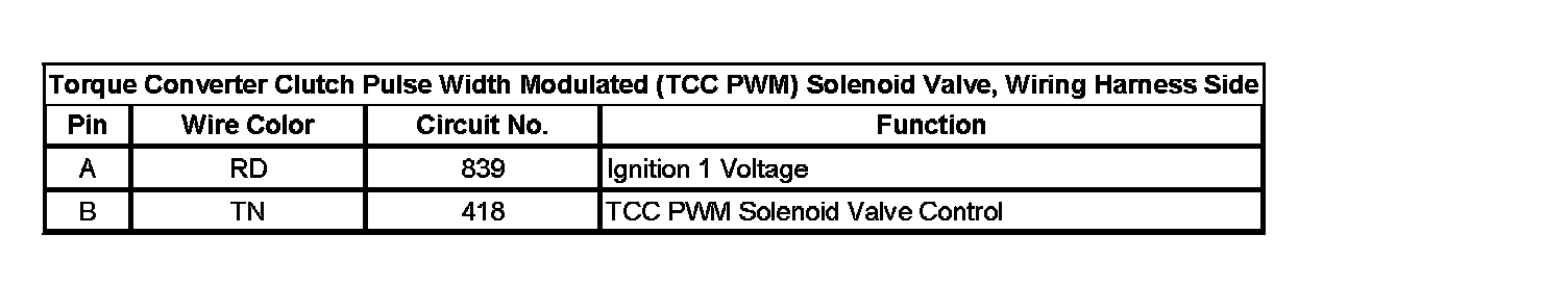 Torque Converter Clutch Pulse Width Modulated (TCC PWM) Solenoid Valve, Wiring Harness Side