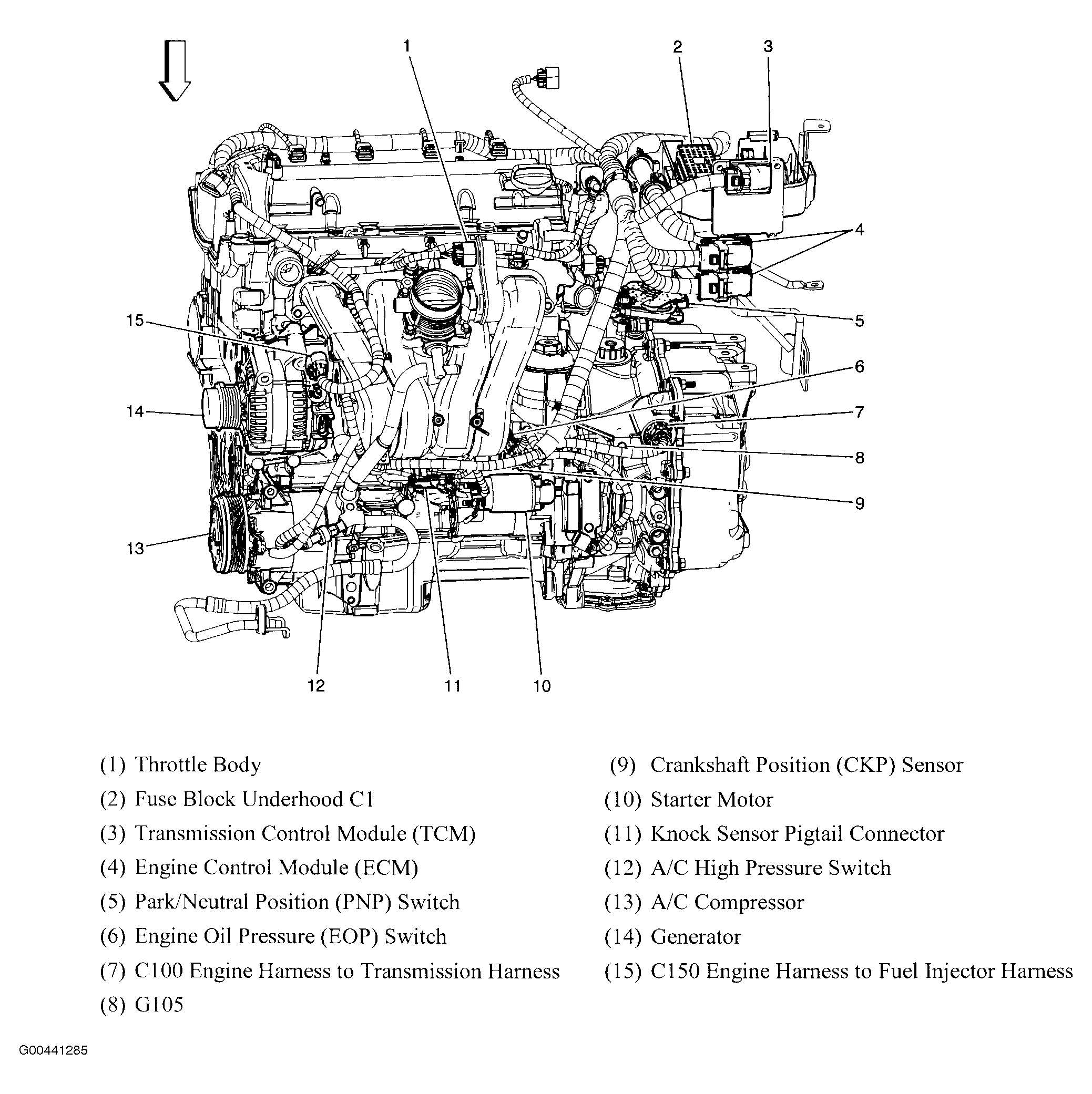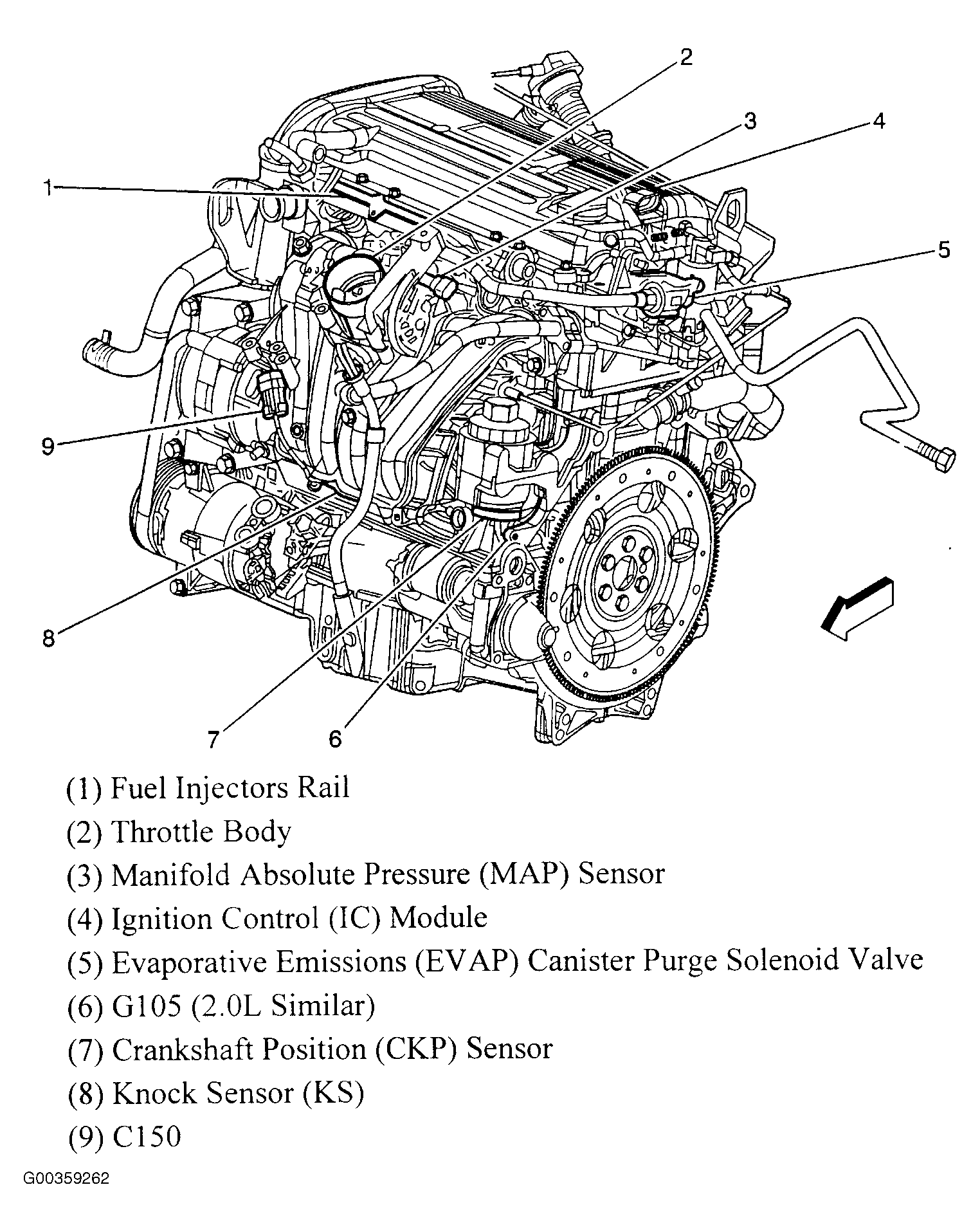 | Powertrain Control Module (PCM) (2.0L) | At rear of engine, near coolant overflow container. See Figure. |