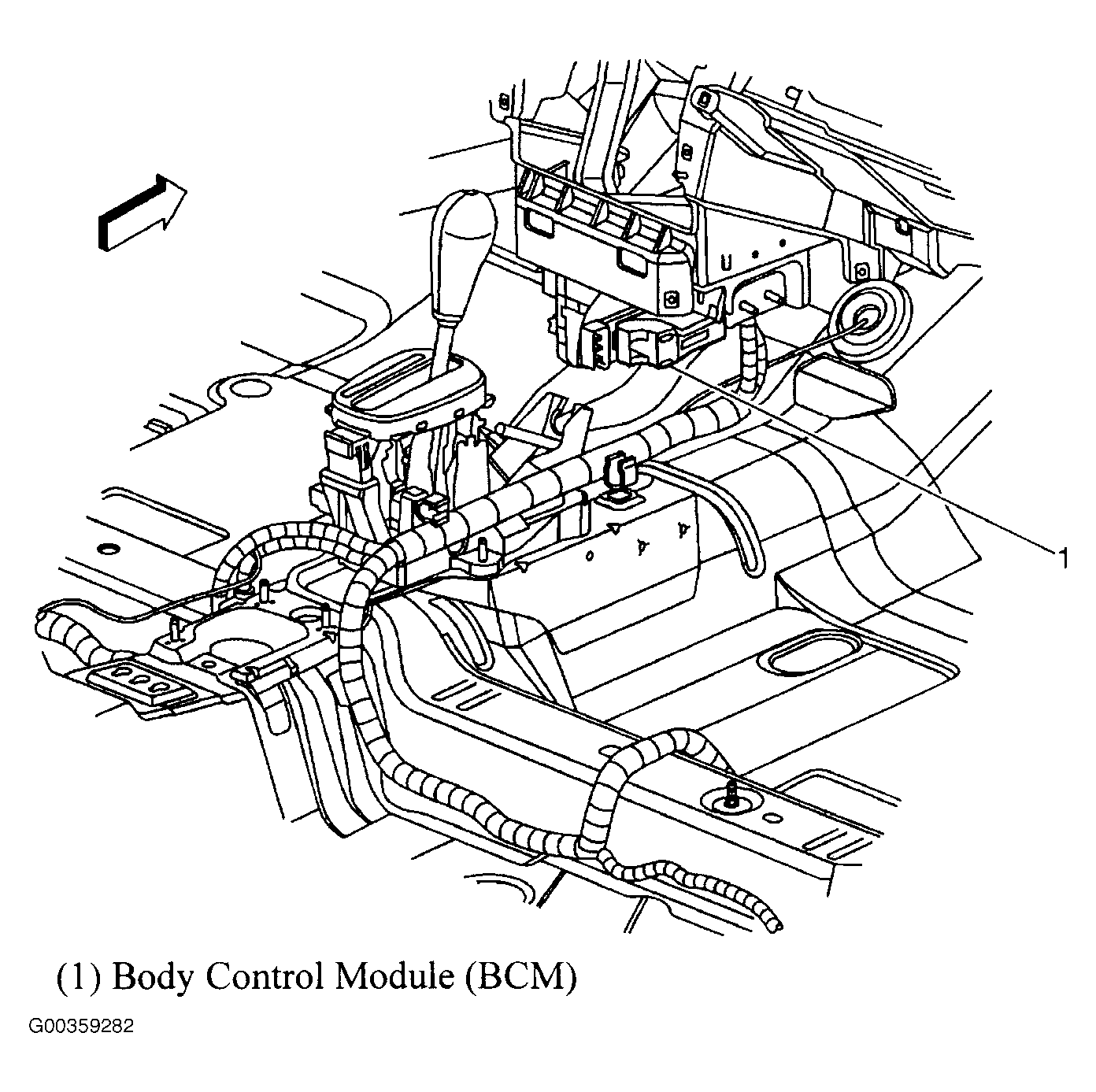 | Body Control Module (BCM) | At lower center of dash. See Figure. |