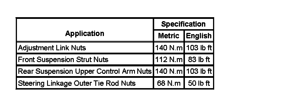 Fastener Tightening Specifications: