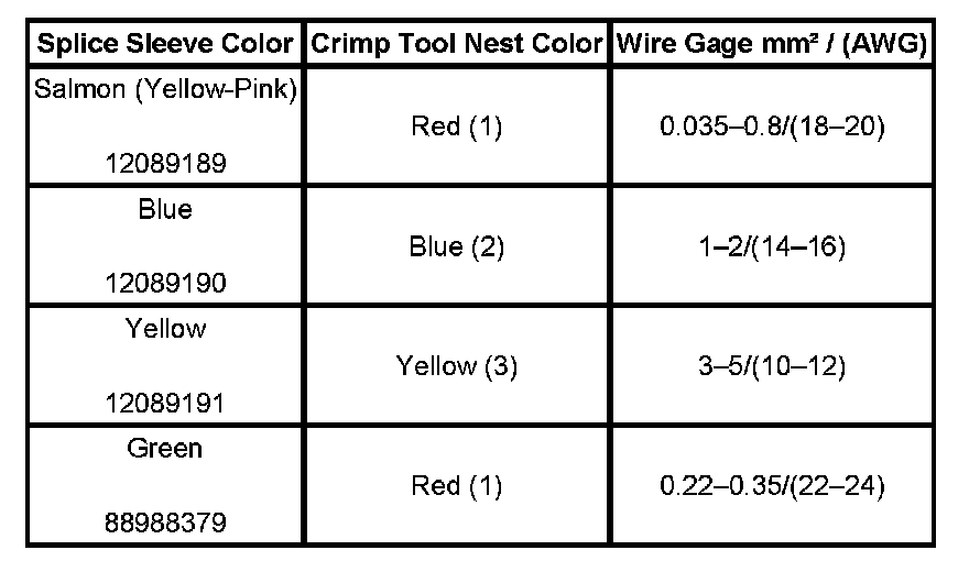 4. Select the proper DuraSeal splice sleeve according to the wire size. Refer to the table at the beginning of the repair procedure for the color coding of the DuraSeal splice sleeves and the crimp tool nests.