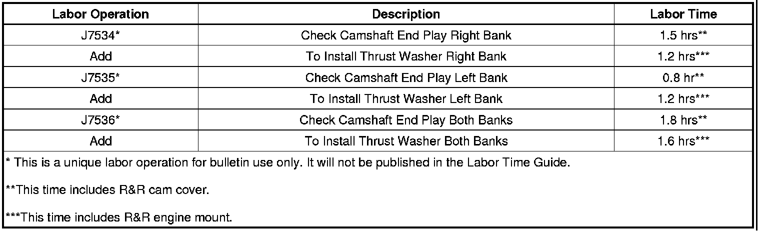 Warranty Information (Thrust Washer Installation) (Chevrolet Camaro)