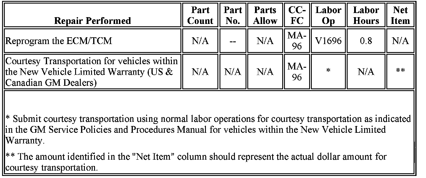 2. Reprogram the Engine Control Module (ECM) then the Transmission Control Module (TCM) under Programming Sequence ECM/TCM. Refer to SI and Service Programming System (SPS) documentation for ECM and TCM programming instructions, if required.