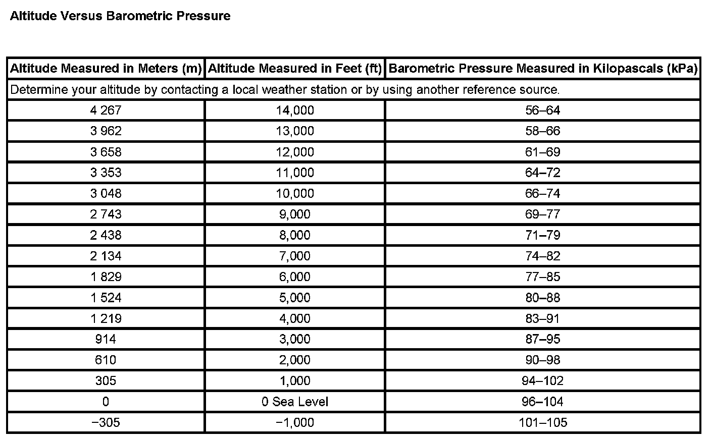 Altitude Versus Barometric Pressure: