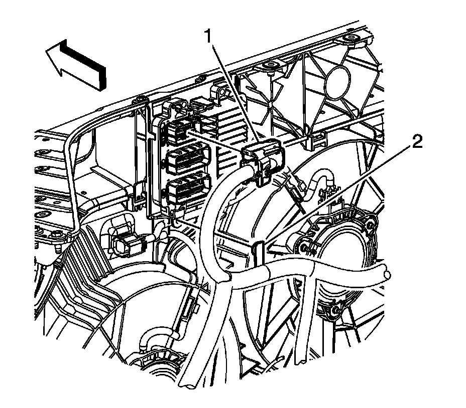 Gently lift up the retaining tab (1) and lift the ECM up and out of the support brackets on the ECM bracket.