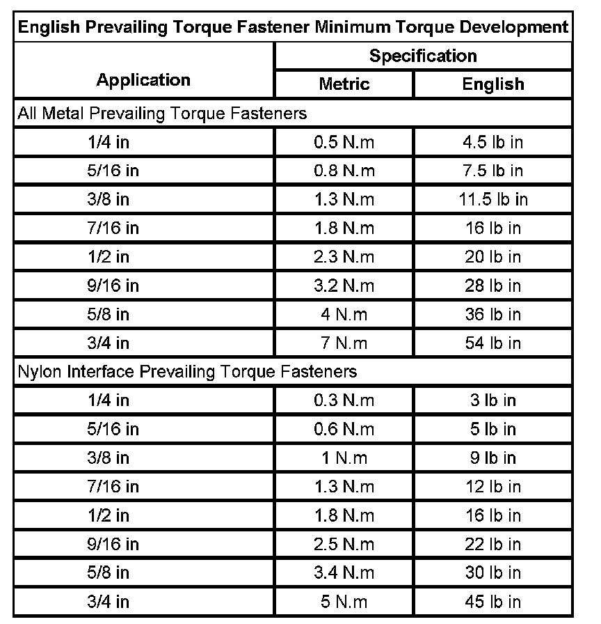 * The fastener develops the specified minimum torque against its counterpart prior to the fastener seating