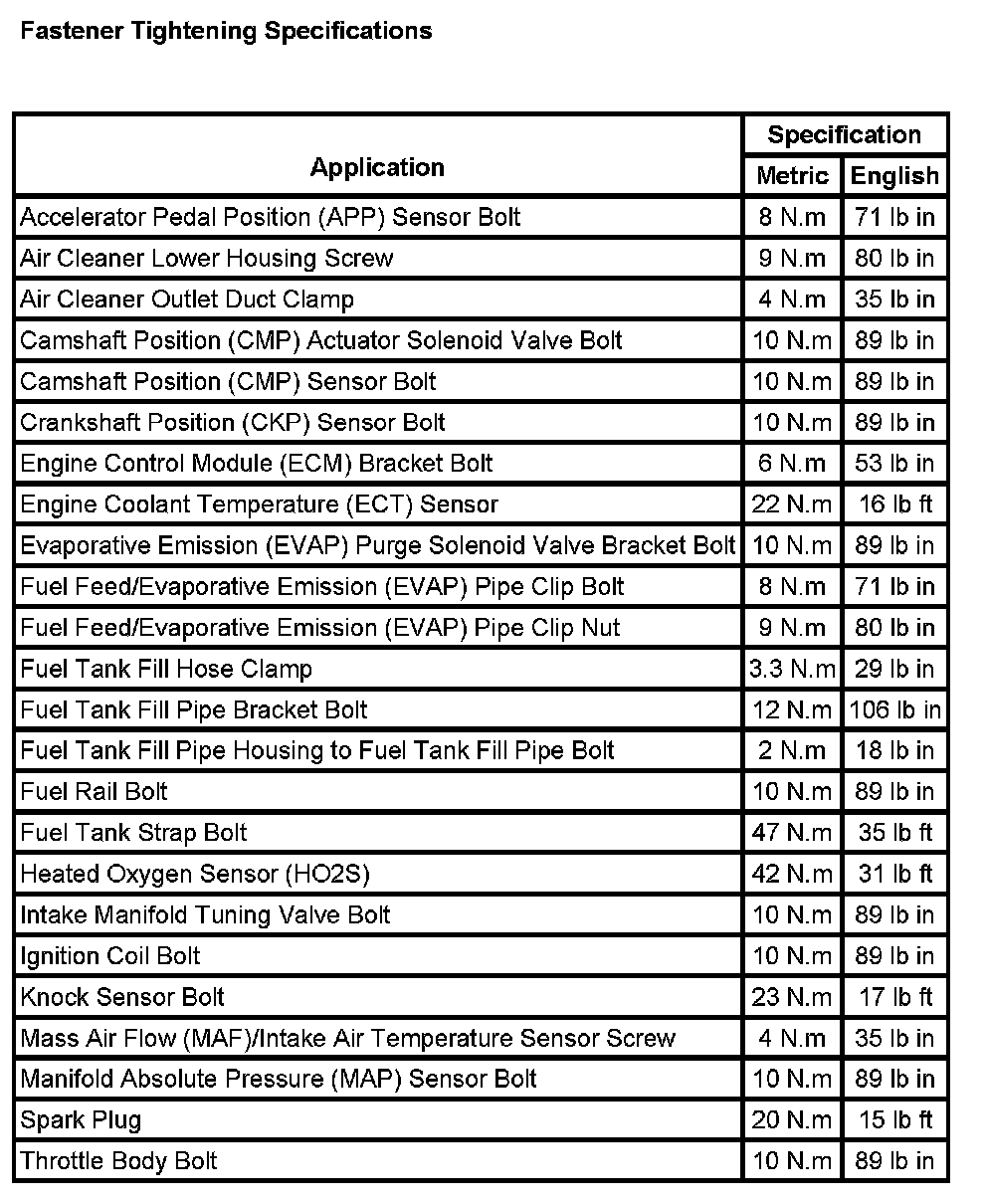 Fastener Tightening Specifications: