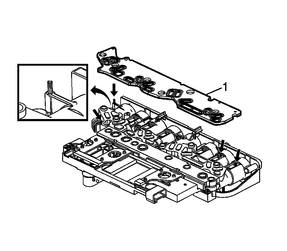 Notice: Use care when removing or installing the filter plate assembly. A broken or missing retaining tab may not adequately secure the filter plate to the control solenoid valve assembly, resulting in possible damage or contamination.