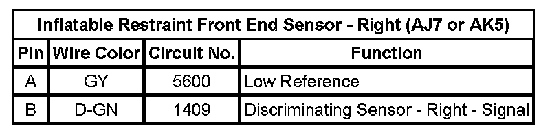 Inflatable Restraint Front End Sensor - Right (AJ7 or AK5)