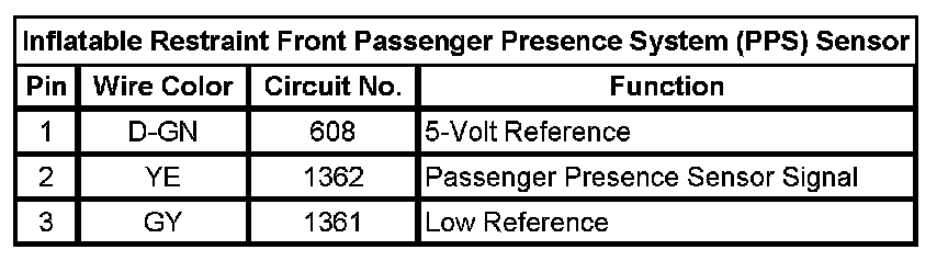Inflatable Restraint Front Passenger Presence System (PPS) Sensor