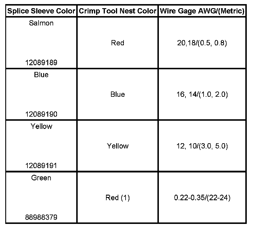 5. Select the proper duraseal splice sleeve (2) and the required crimp nest tool. Refer to the Crimp and Seal Splice Table.