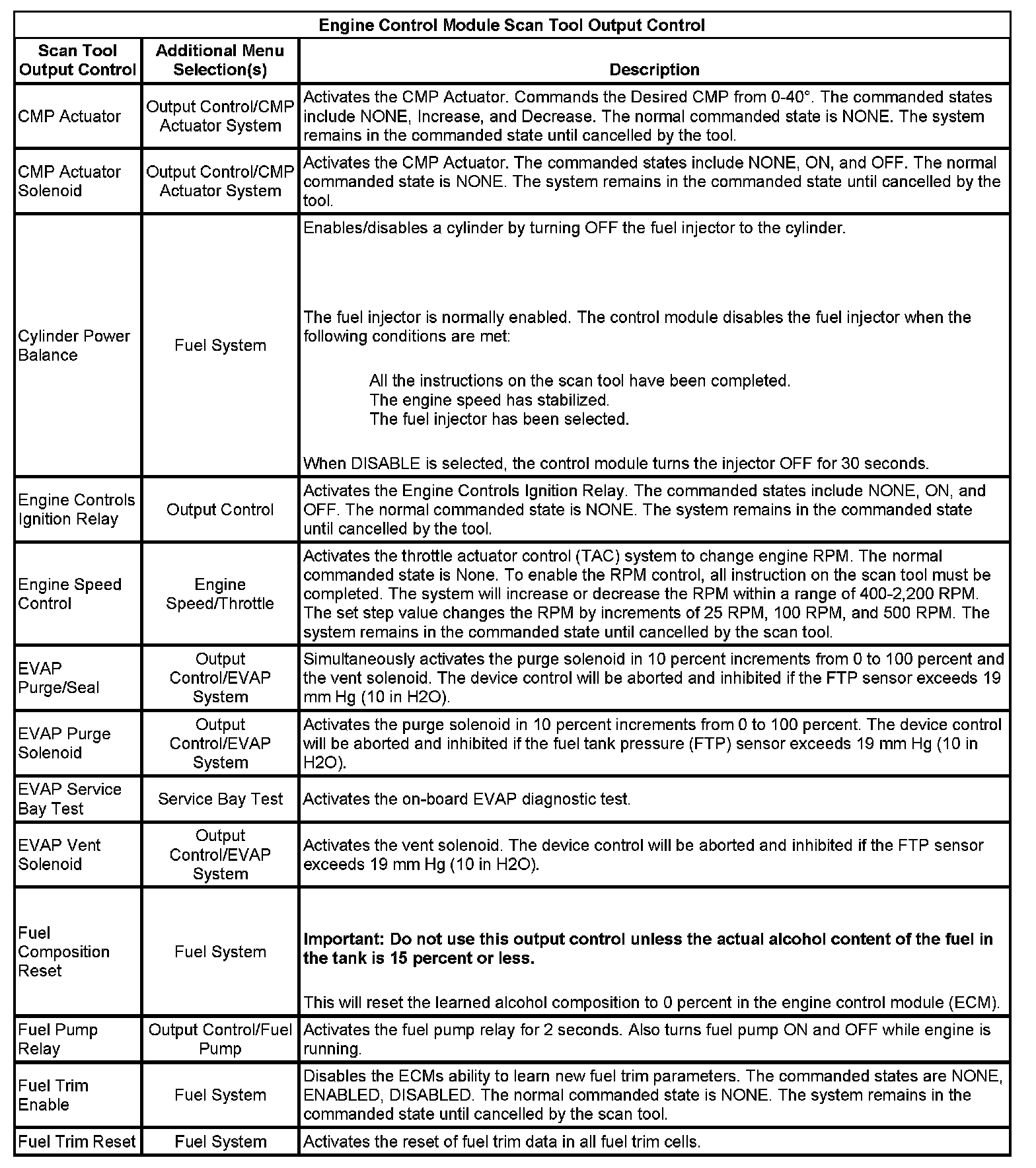 Scan Tool Output Controls