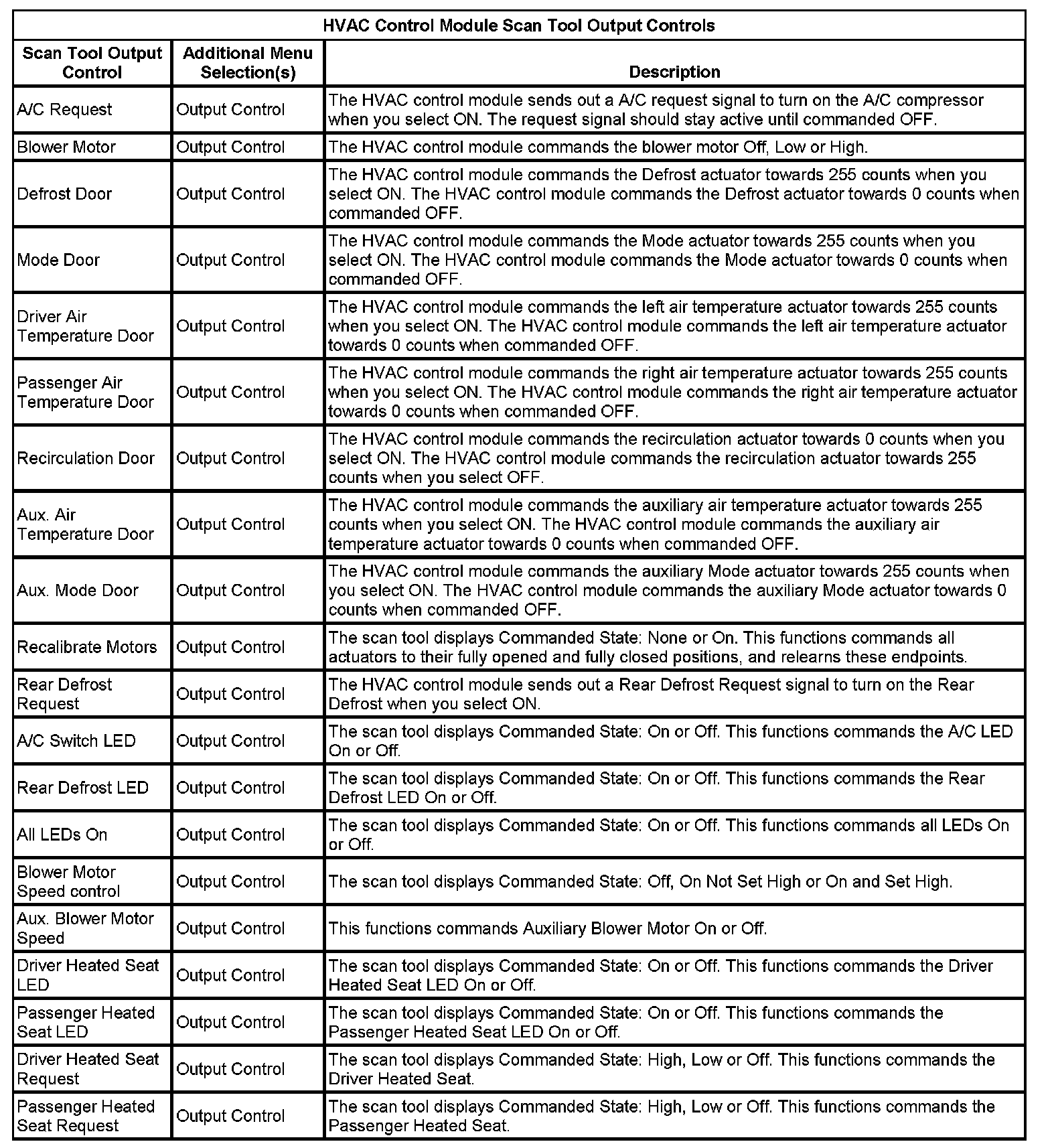 Scan Tool Output Controls