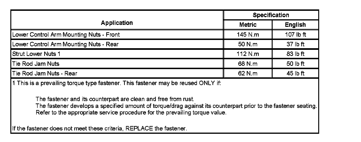Fastener Tightening Specifications: