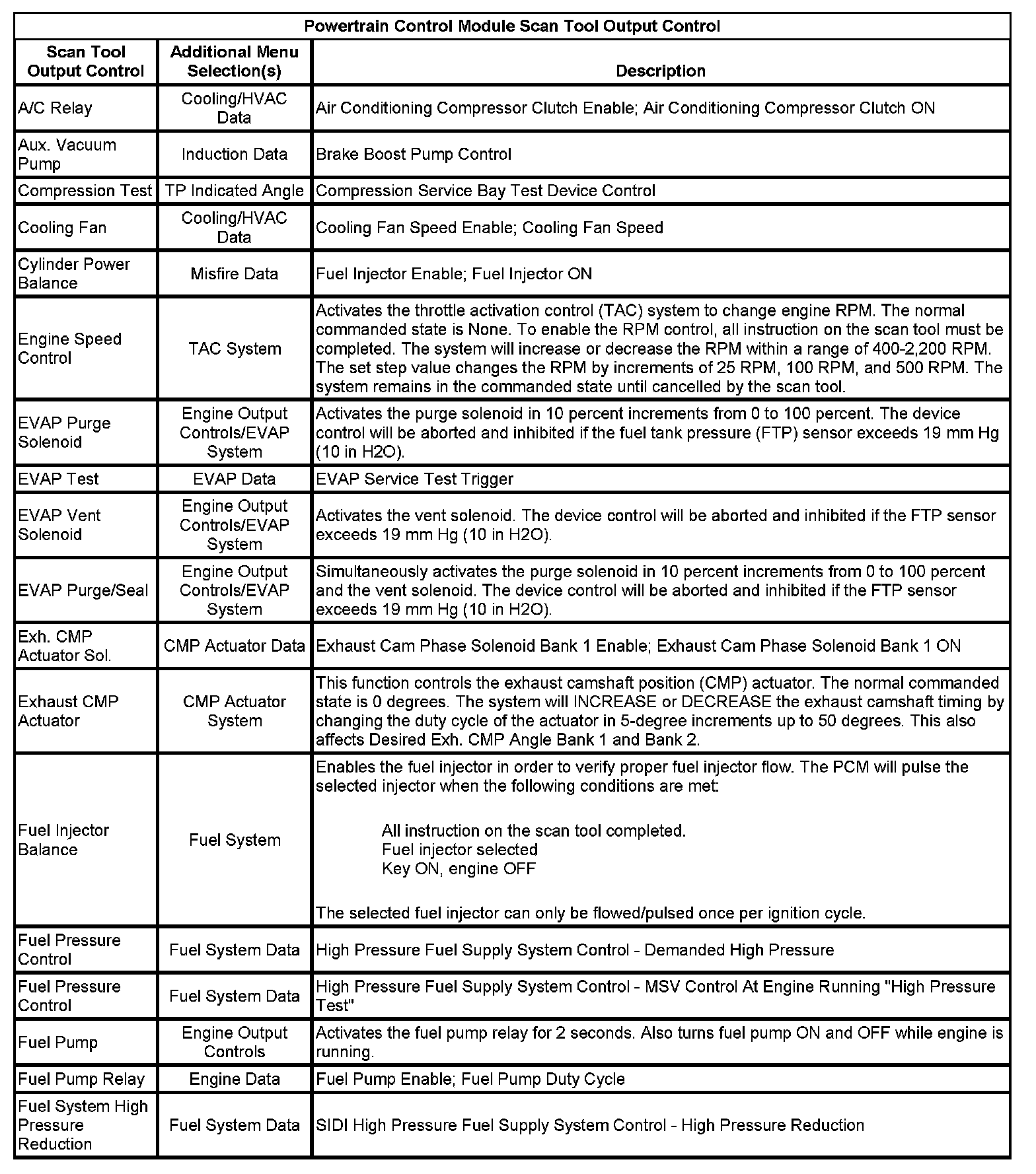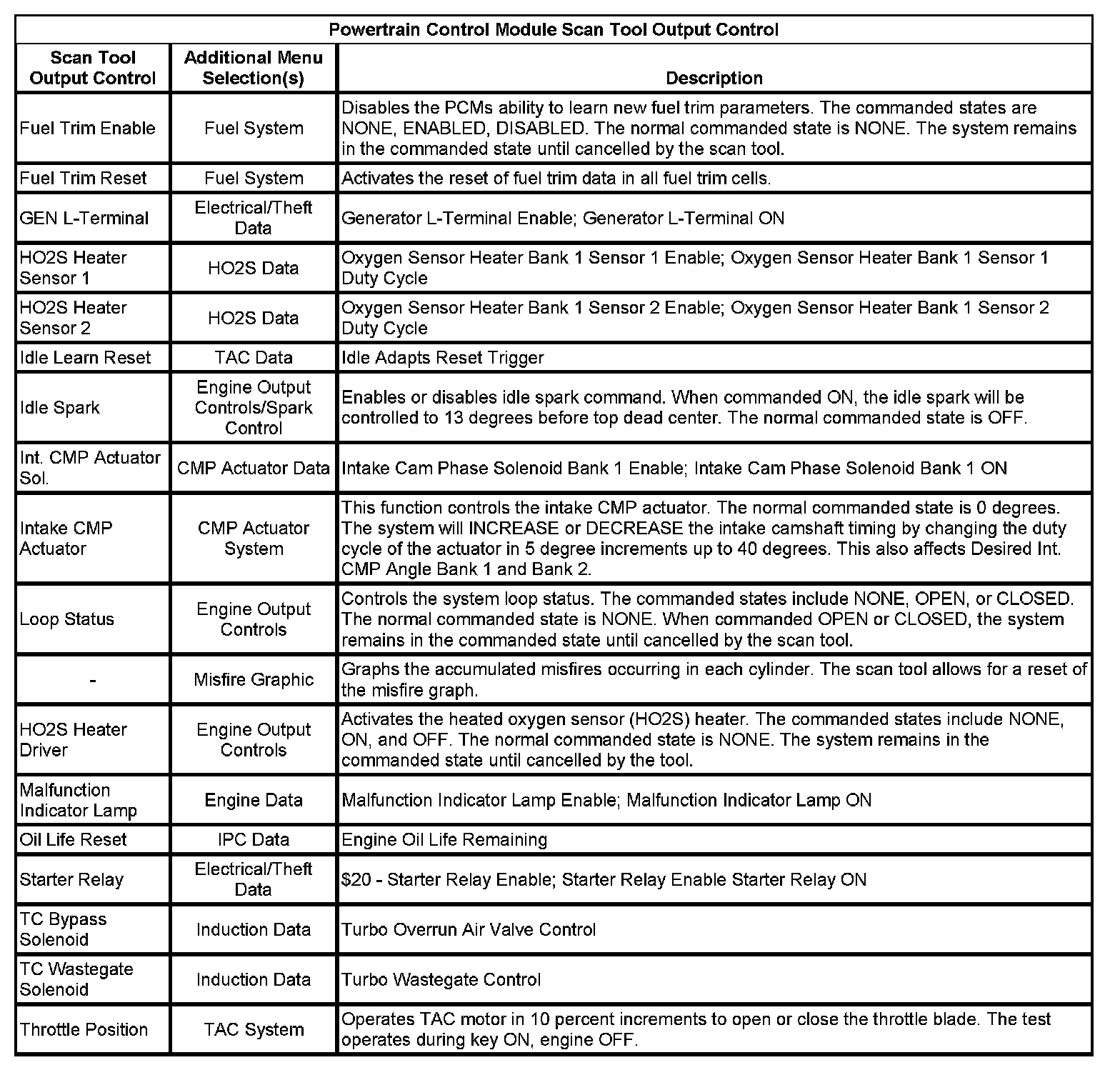 Scan Tool Output Controls