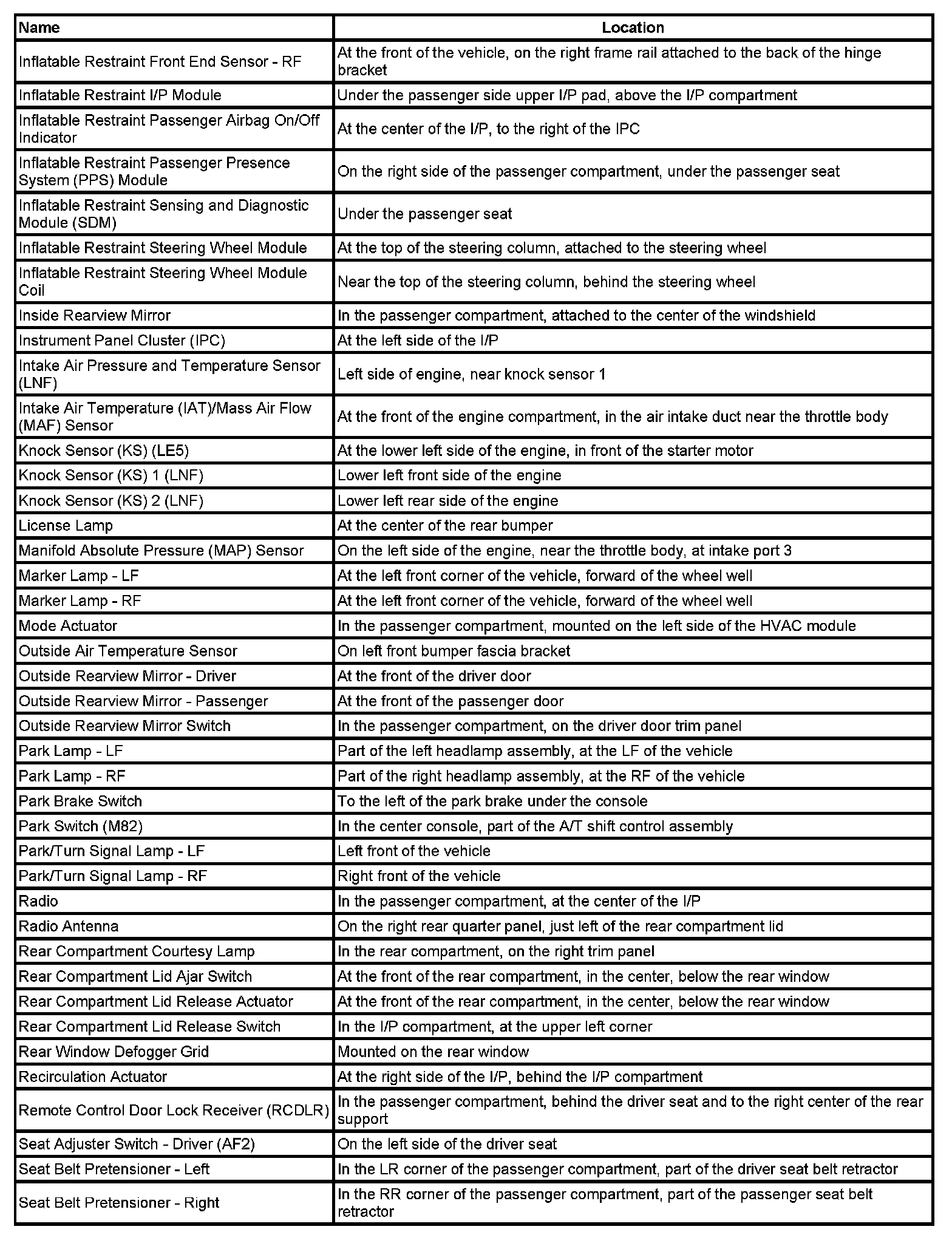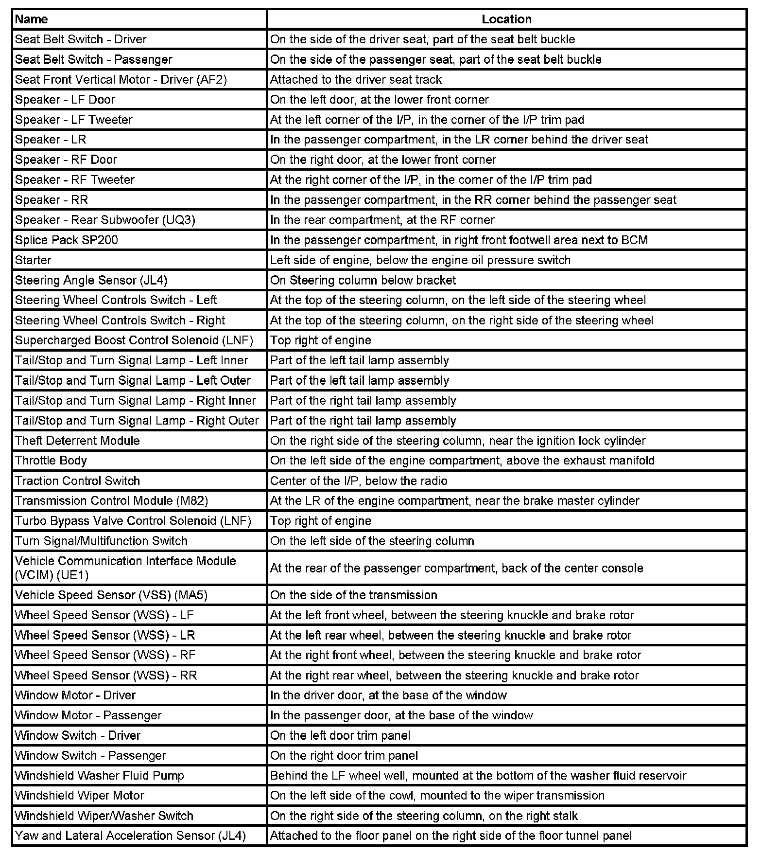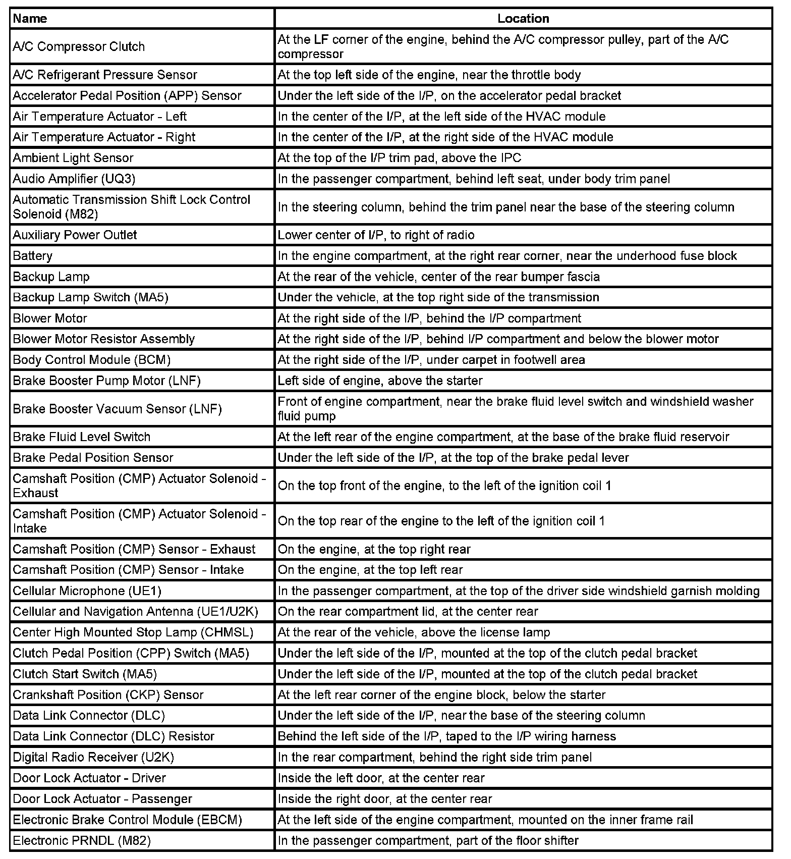 Master Electrical Component List