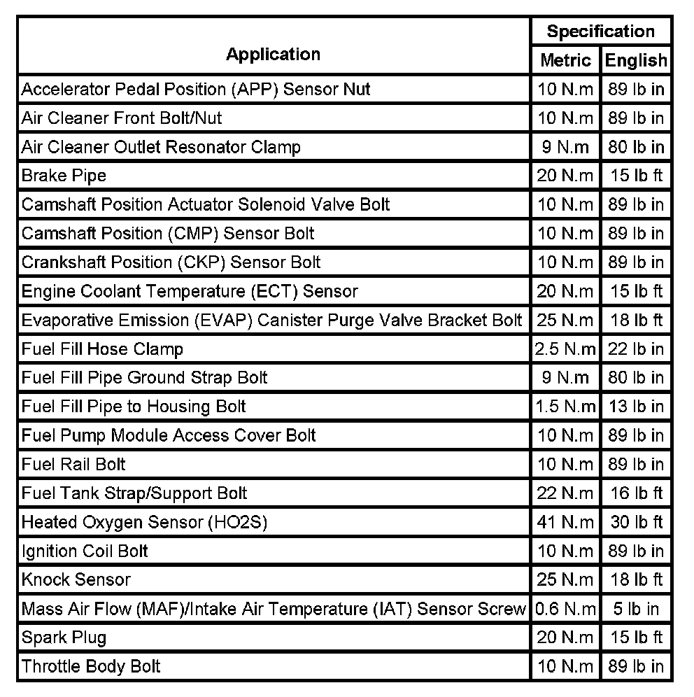 Fastener Tightening Specifications