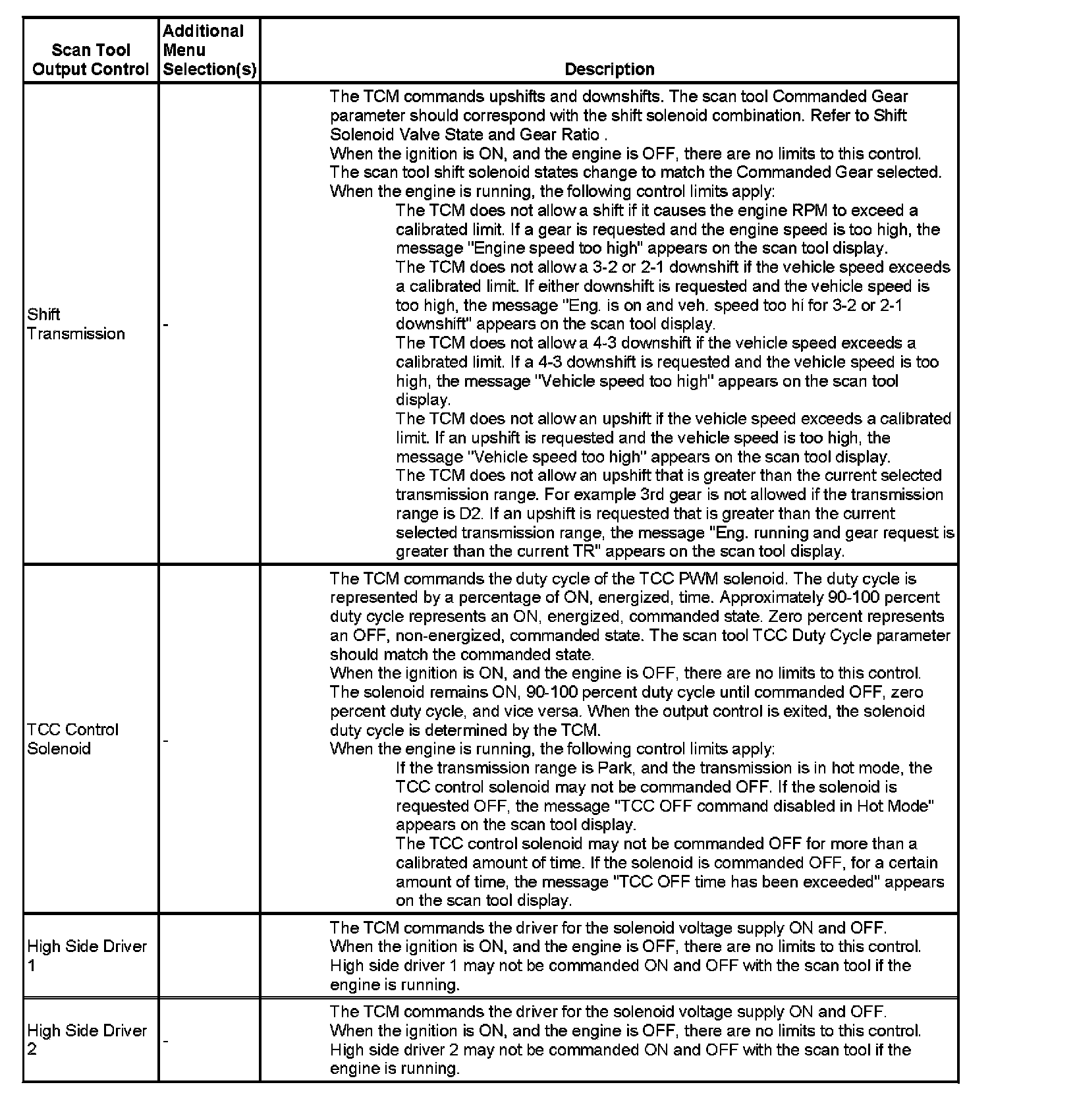 Scan Tool Output Controls