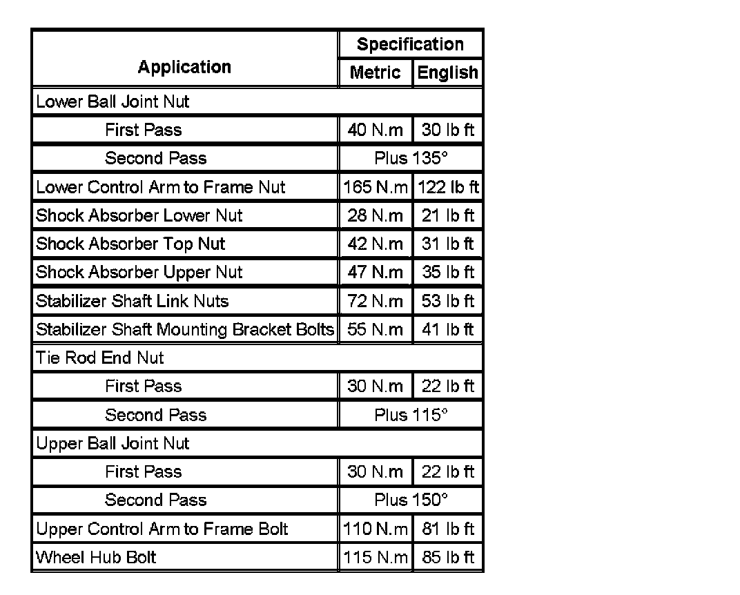Fastener Tightening Specifications: