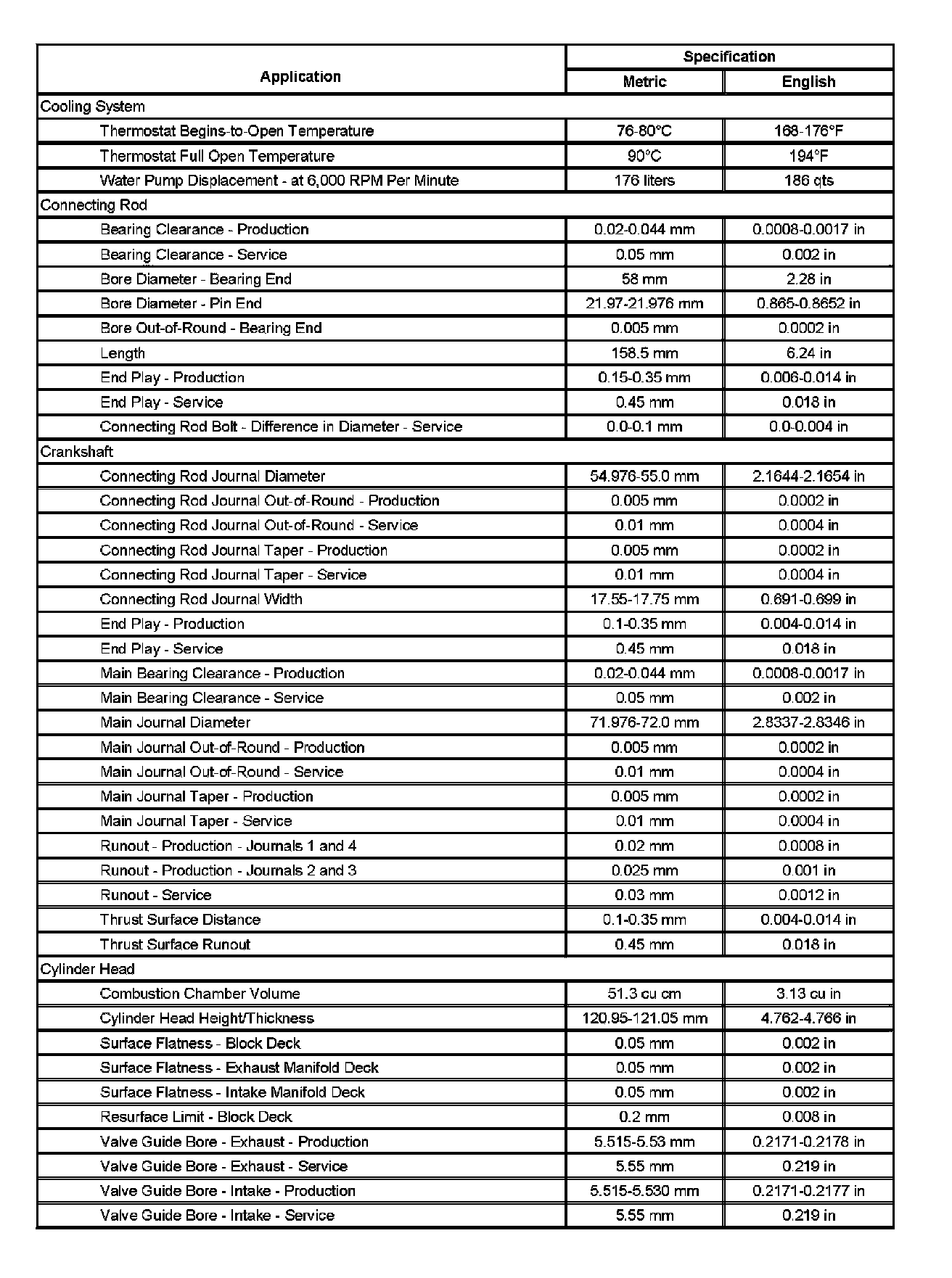 Engine Mechanical Specifications (Part 4):
