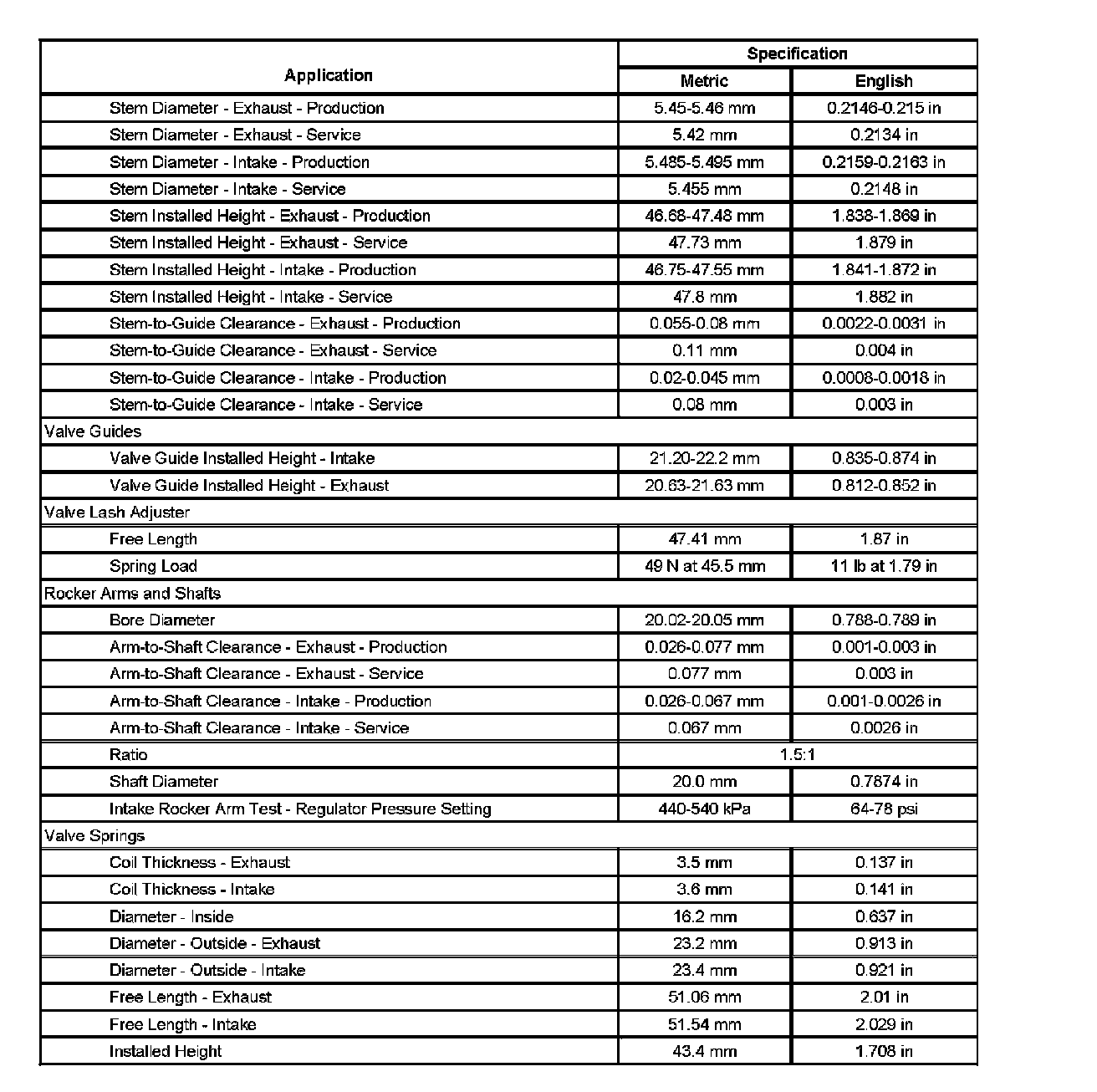 Engine Mechanical Specifications (Part 5):