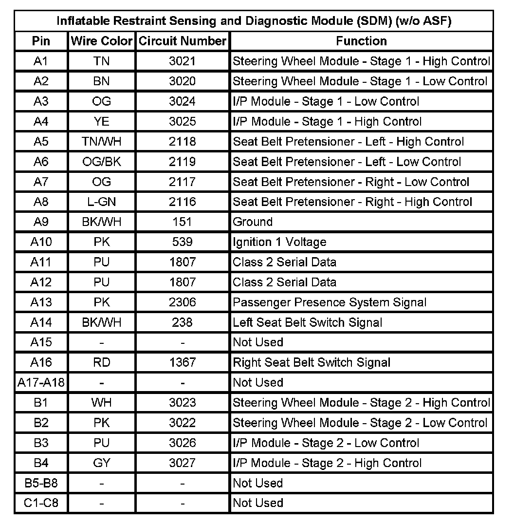 Inflatable Restraint Sensing and Diagnostic Module (SDM) (w/o ASF)