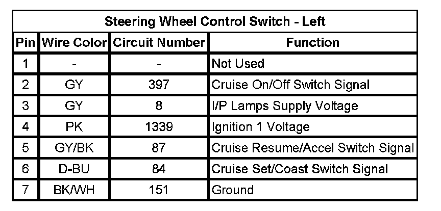 Steering Wheel Control Switch - Left
