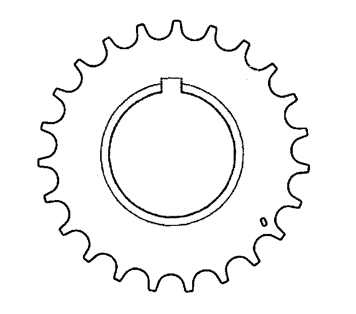 ^ Install the timing chain drive sprocket to the crankshaft with the timing mark in the 5 o'clock position.