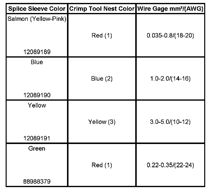 4. Select the proper DuraSeal splice sleeve according to the wire size. Refer to the table at the beginning of the repair procedure for the color coding of the DuraSeal splice sleeves and the crimp tool nests.