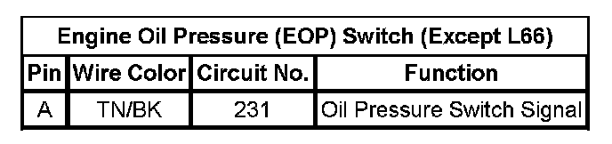 Engine Oil Pressure (EOP) Switch (Except L66)