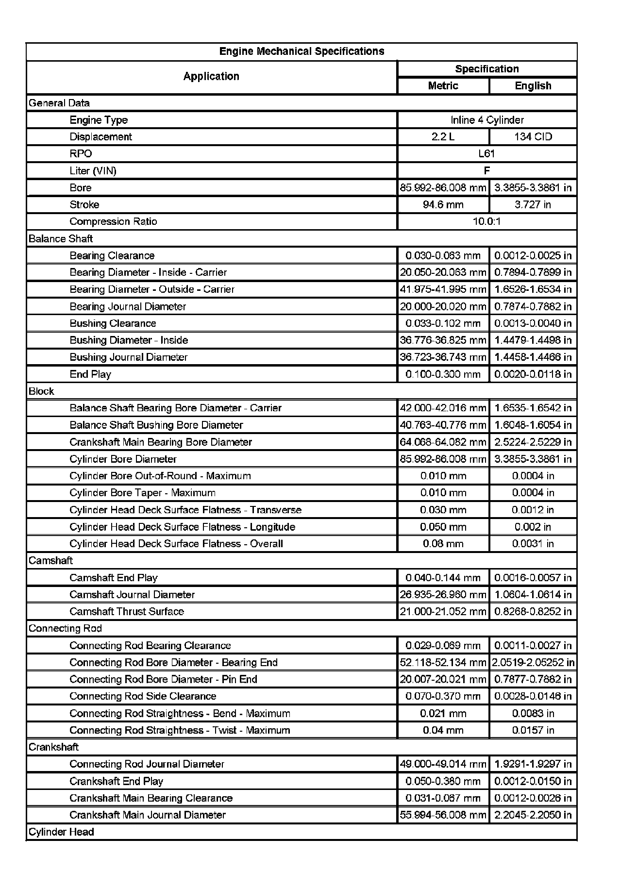 Engine Mechanical Specifications (Part 2):