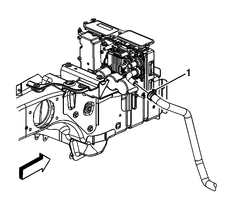 8. Position the generator control module coolant hose clamp (1) at the generator control module.