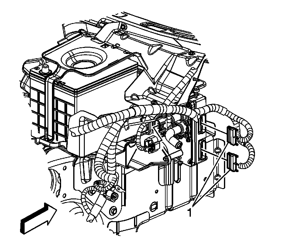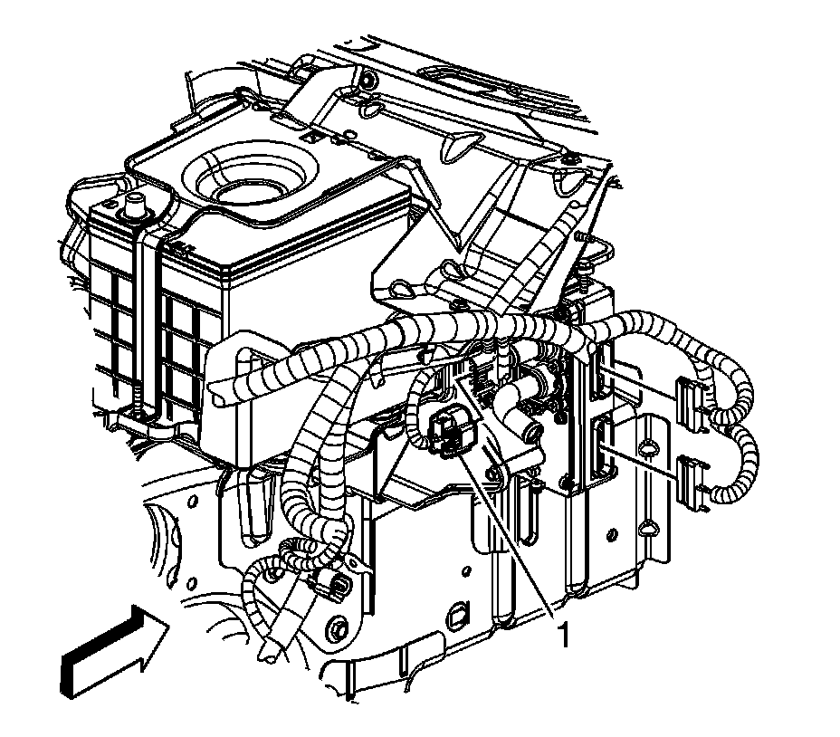 22. Disconnect the engine wiring harness electrical connector (1) from the transaxle auxiliary pump module
