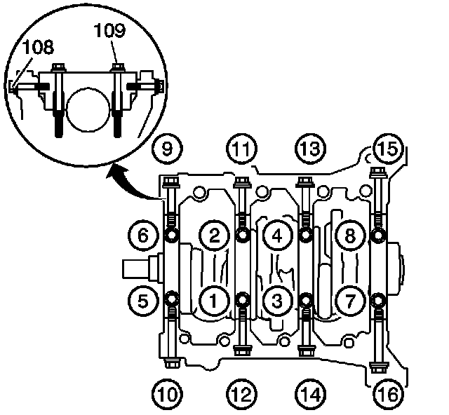 Crankshaft Main Bearing Cap Bottom M11 Bolts 74 N.m (54 lb ft)