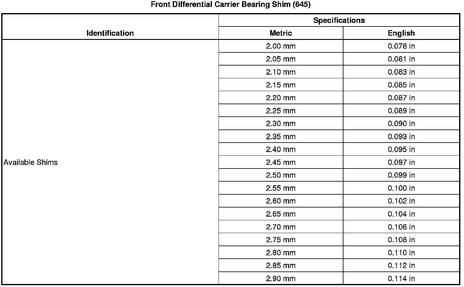 Shim Size Specifications
