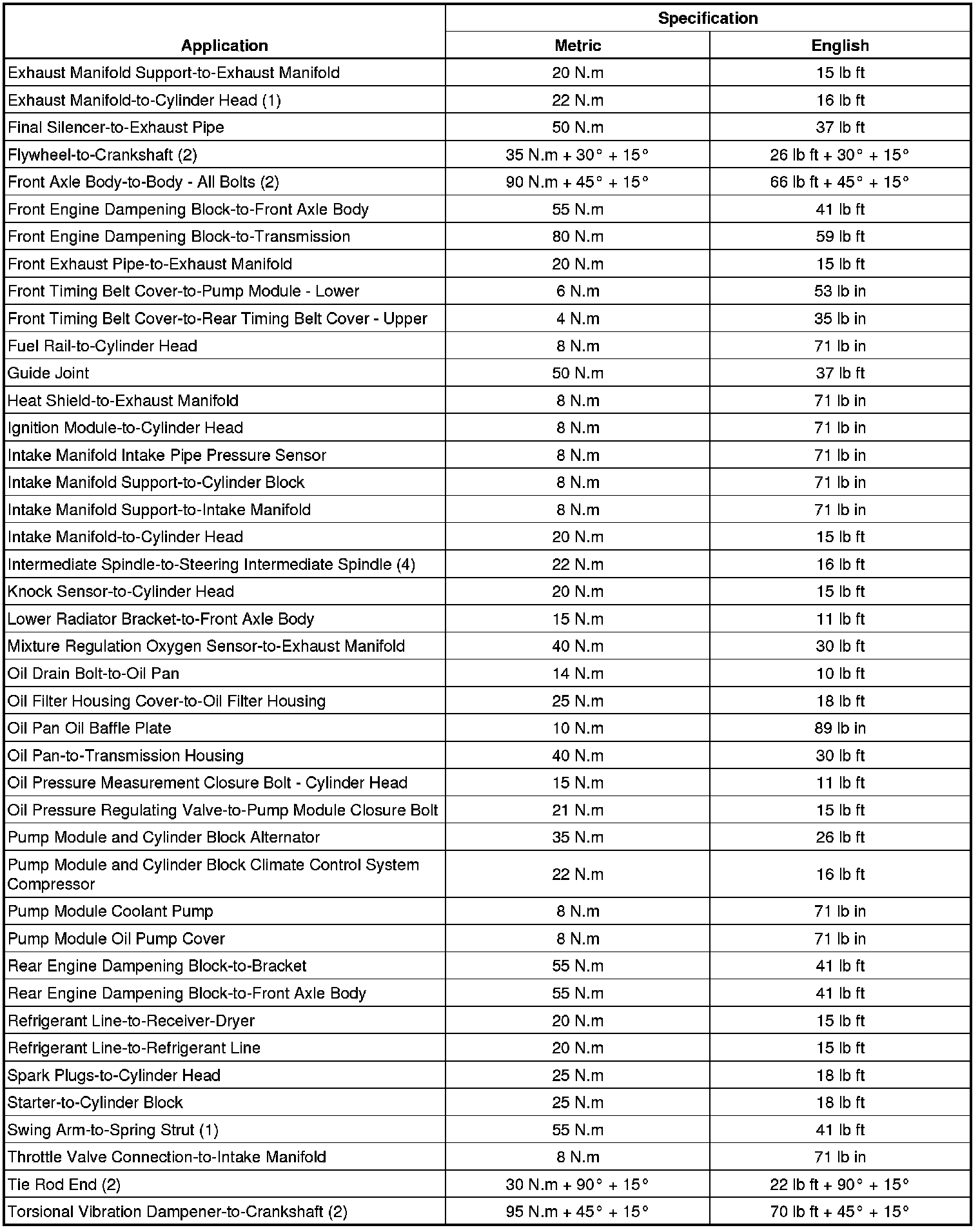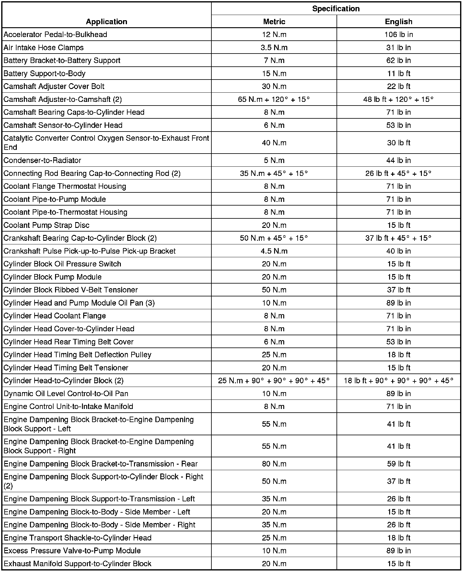 Fastener Tightening Specifications