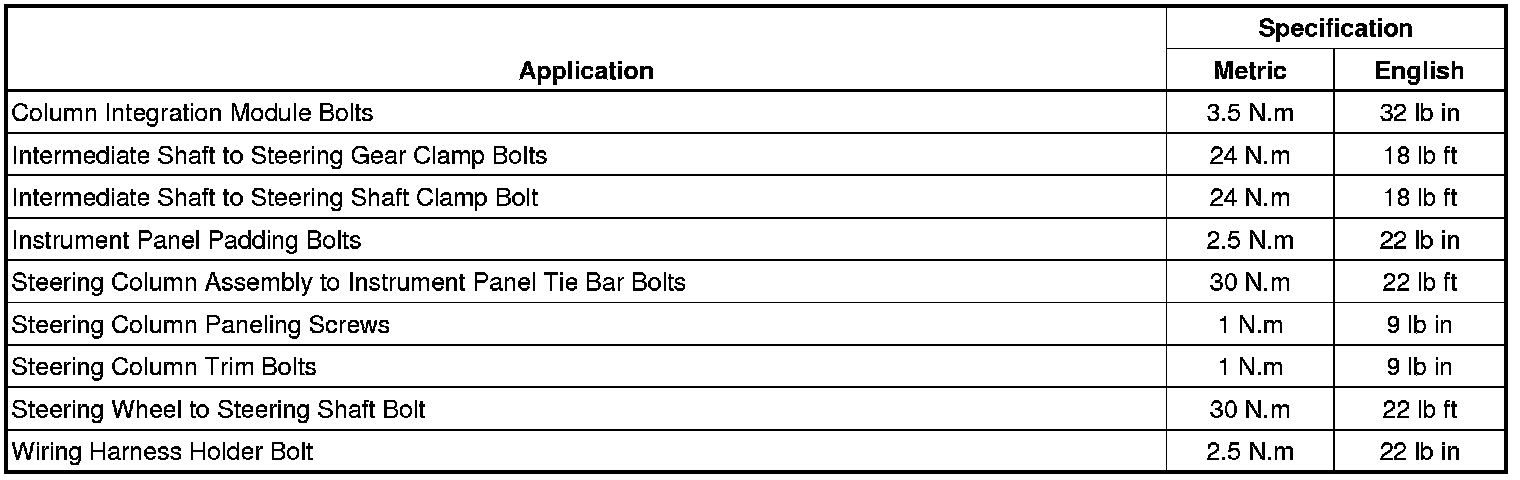 Fastener Tightening Specifications