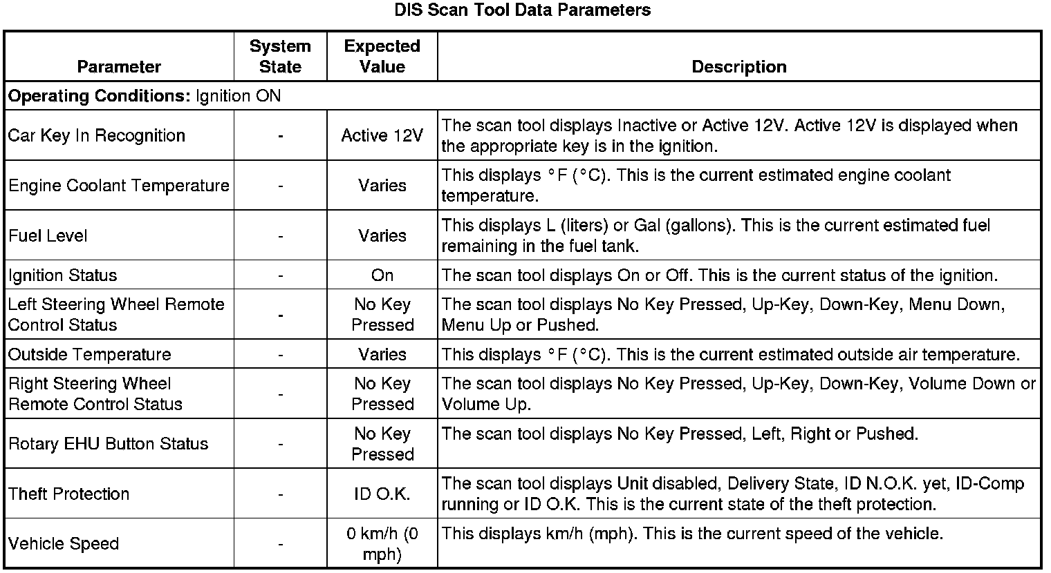 Driver Information Display Scan Tool Information