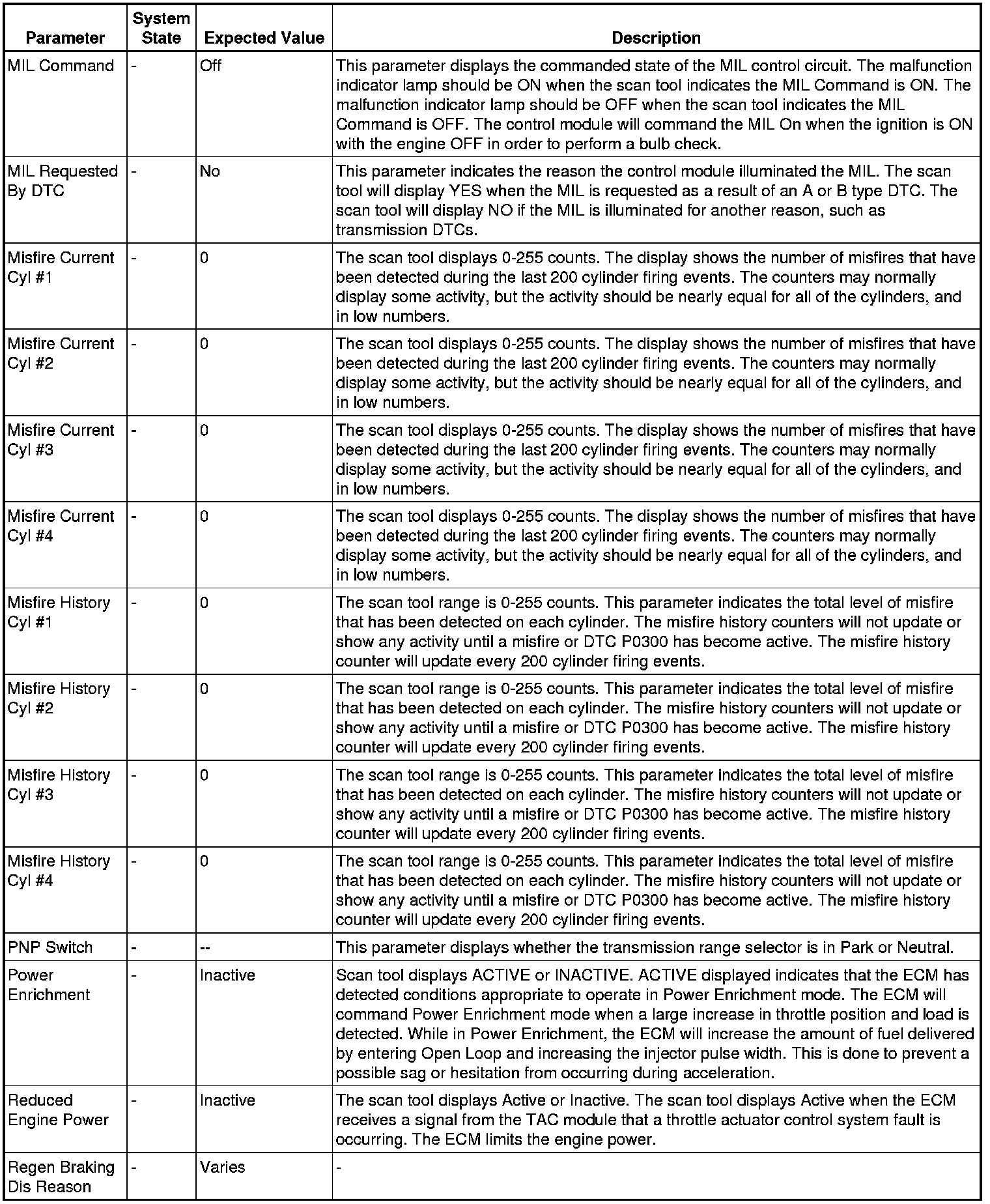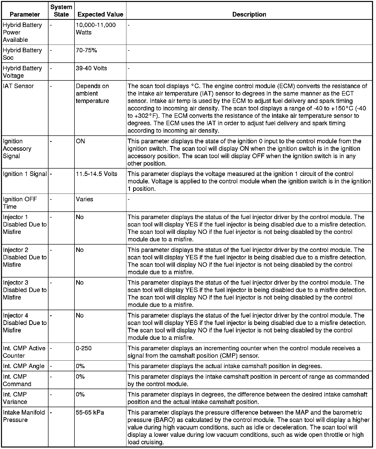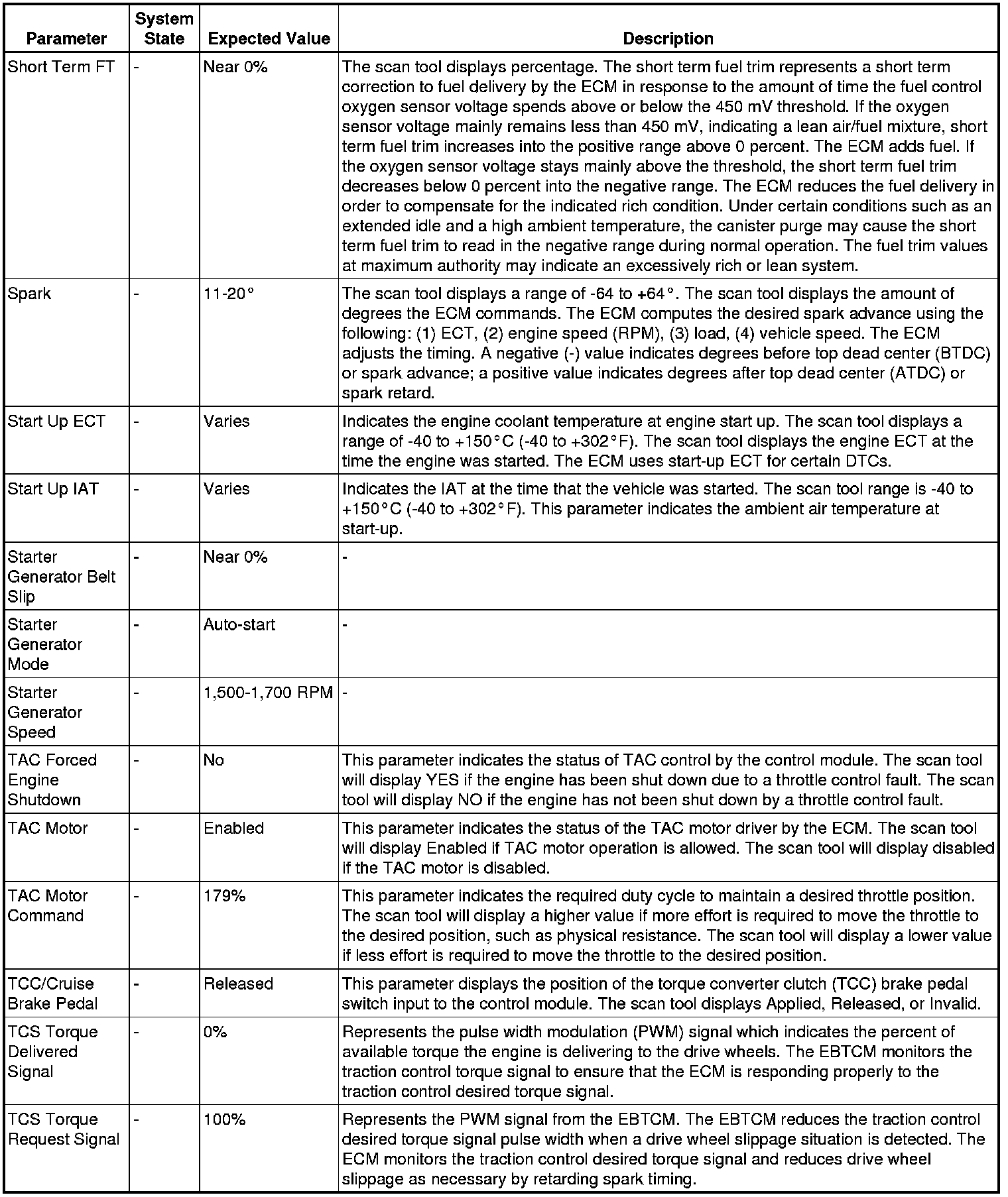 Only the parameters listed below are referenced in this service manual for use in diagnosis. If all values are within the typical range described below, refer to Symptoms - Engine Controls (- Symptoms - Engine Controls) for diagnosis.