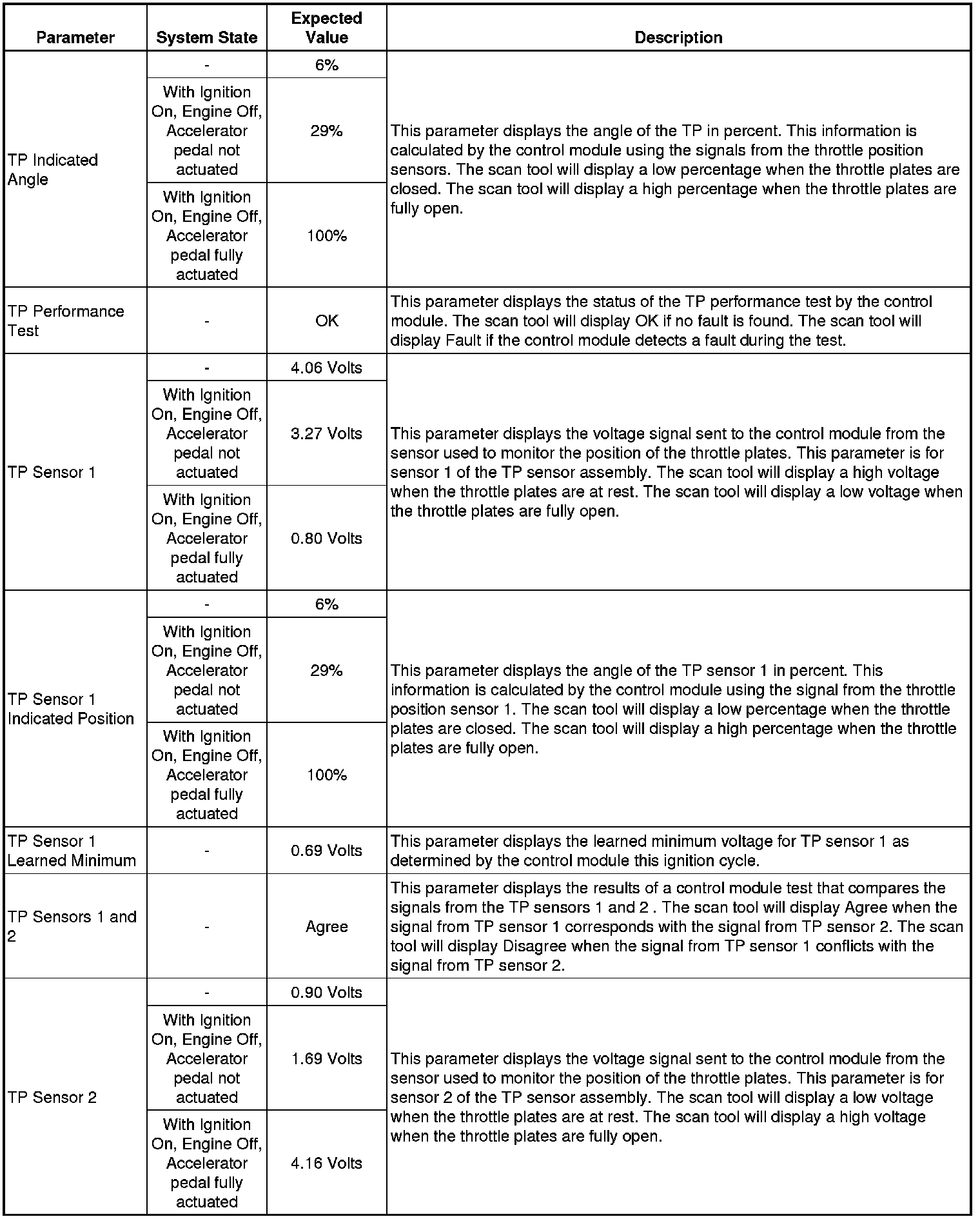 Only the parameters listed below are referenced in this service manual for use in diagnosis. If all values are within the typical range described below, refer to Symptoms - Engine Controls (- Symptoms - Engine Controls) for diagnosis.