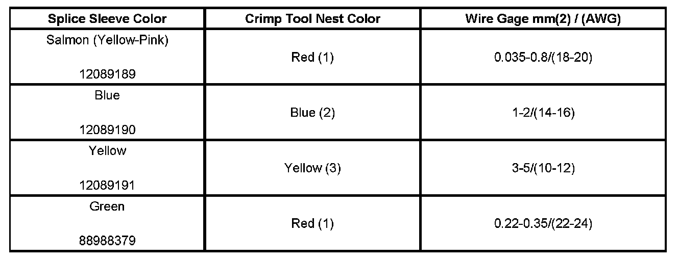 4. Select the proper DuraSeal splice sleeve according to the wire size. Refer to the above table at the beginning of the repair procedure for the color coding of the DuraSeal splice sleeves and the crimp tool nests.