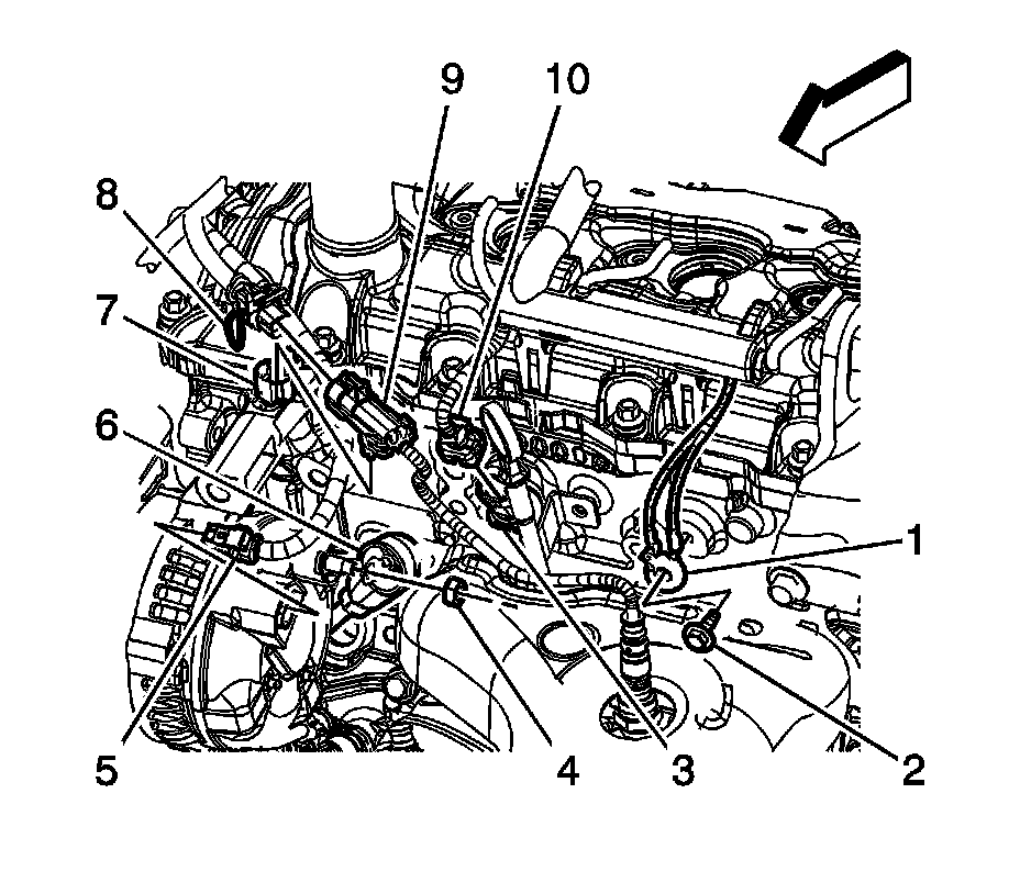1. Disconnect the engine wiring harness electrical connector (10) from the engine coolant temperature (ECT) sensor (3).